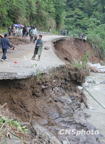 ?5月8日,搶險(xiǎn)人員在湖南省婁底市新化縣奉家鎮(zhèn)對(duì)被洪水沖毀的公路進(jìn)行搶修。強(qiáng)降雨近日頻襲湖南,目前強(qiáng)降雨已致湖南省婁底、懷化、衡陽(yáng)、株洲、湘潭、邵陽(yáng)、郴州7市169萬(wàn)人受災(zāi),13人因?yàn)?zāi)死亡或失蹤,緊急轉(zhuǎn)移人口28597人,倒房6114間,造成直接經(jīng)濟(jì)損失13.63億元。 中新社發(fā) 郭國(guó)權(quán) 攝