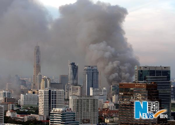 5月19日,在泰國首都曼谷,世貿(mào)中心冒出滾滾濃煙。 新華社/路透