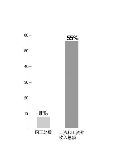 ????據(jù)國家統(tǒng)計局統(tǒng)計,職工平均工資最高的三個行業(yè)中,證券業(yè)平均17.21萬元,是全國平均水平的6倍,其他金融業(yè)人均8.767萬元,是全國平均水平的3.1倍,航空業(yè)人均7.58萬元,是全國平均水平的2.6倍。而電力、電信、石油、金融、保險、水電氣供應(yīng)、煙草等國有行業(yè)的職工不足全國職工總數(shù)的8%,但工資和工資外收入總額卻相當(dāng)于全國職工工資總額的55%。