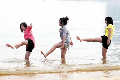 ????迅速升高的氣溫也讓不少市民和游客今年首次出現(xiàn)了“汗流浹背”的情景。記者在棧橋看到,一些攝影的市民額頭見汗,很多游客的T恤的背部也出現(xiàn)了濕透的情況?!敖裉煸趺催@么熱啊,太陽直接照下來,連點(diǎn)云彩也看不見?!币幻忻窀嬖V記者。