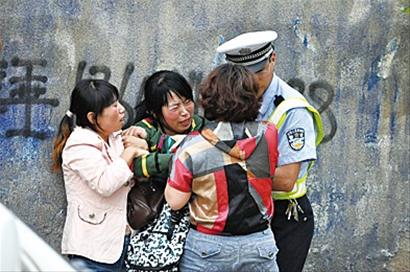 ????記者注意到,一名20多歲的削瘦男子坐在面包車北面的一堆沙土上,低著頭唉聲嘆氣,不時(shí)哽咽幾聲,口里低聲說著“都怪我,都怪我啊”?!斑@個(gè)男子是小男孩的父親,他坐在那里難過了好長時(shí)間了?!爆F(xiàn)場一名市民告訴記者。過了一會(huì)兒,一輛出租車?yán)瓉韼酌?,其中一名女子一下車就腳步踉蹌,哭著跑向現(xiàn)場,跟她同行的幾名女子趕緊將她抱住,這名女子癱坐在地上,頓時(shí)哭得死去活來。