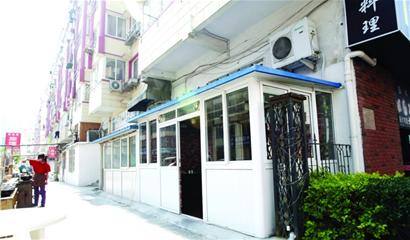 ????記者在古田路14、16號(hào)調(diào)查發(fā)現(xiàn),小區(qū)業(yè)主大多都依托原有房屋建有臨時(shí)板房,有的用來做廚房、有的成了儲(chǔ)藏間。古田路14號(hào)附近一棟居民樓前,一樓每戶人家都建的違法房達(dá)四十多平方米。這些板房大多都被用來作為旅館的門頭和房間。為了方便客人進(jìn)入,房主將承重墻打掉,把違法房和一樓連起來。
