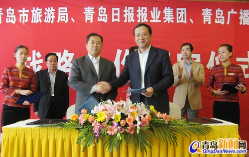市旅游局與青島日?qǐng)?bào)報(bào)業(yè)集團(tuán)、青島市廣播電視臺(tái)簽署戰(zhàn)略合作協(xié)議