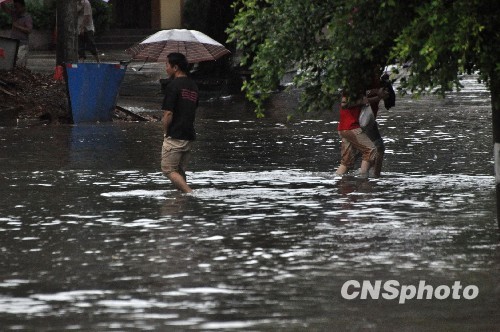 ????6月8日6時40分許,廣西東興市電閃雷鳴,暴雨傾盆,僅一個小時市區(qū)的許多路段都成了澤國,給市民出行帶來不便。 中新社發(fā) 喻湘泉 攝 ????中新網(wǎng)6月9日電 綜合消息,全國高考期間,新一輪強降雨天氣過程再襲中國南方,湖南、湖北、江西、四川、貴州等地區(qū)多個縣市均遭受到不同程度的災(zāi)害。截至目前,湖南暴雨洪災(zāi)已經(jīng)導(dǎo)致6人死亡2人失蹤,湖北也出現(xiàn)因災(zāi)失蹤和死亡個案,各地因應(yīng)暴雨災(zāi)害紛紛啟動應(yīng)急響應(yīng),因預(yù)報及防范及時,各省市高考未受太大影響。 ????中央氣象臺9日清晨繼續(xù)發(fā)布暴雨藍色預(yù)警,未來一天安徽北部和東部、江蘇大部、上海、浙江、福建、江西南部、廣東大部、廣西東部和南部等地有大雨,其中,江蘇西部的部分地區(qū)、浙江南部、福建東北部和南部、廣西南部、廣東大部等地有暴雨,局部地區(qū)有大暴雨。 ????湖南暴雨洪災(zāi)致6人死亡2人失蹤 12.4萬人轉(zhuǎn)移 ????入汛以來的湖南洪災(zāi)不斷。新一輪強降雨6日再度來襲,導(dǎo)致湖南湘西自治州、懷化等地遭受嚴(yán)重暴雨洪澇災(zāi)害。截至8日17時統(tǒng)計,此輪降雨已造成湖南6人死亡,2人失蹤,12.4萬人緊急轉(zhuǎn)移安置。 ????始于6日的這場強降雨自北向南橫掃湖南,從7日晚開始,強降水、強雷電向湘西北發(fā)起強烈攻勢。據(jù)統(tǒng)計,7日8時至8日8時,湖南上空出現(xiàn)2940條閃電,207鄉(xiāng)鎮(zhèn)出現(xiàn)暴雨,76鄉(xiāng)鎮(zhèn)出現(xiàn)大暴雨,最大降雨出現(xiàn)在懷化沅陵縣長界154毫米。截止8日晨7時30分,湖南省氣象臺接連發(fā)出15個暴雨預(yù)警信號,2個雷電預(yù)警信號。鑒于當(dāng)前降雨情況和汛情發(fā)展趨勢,湖南防汛、氣象部門8日先后在全省范圍內(nèi)啟動防汛Ⅲ級應(yīng)急響應(yīng),對長沙地區(qū)拉響雷電紅色警報。 ????湖南溆浦在此次暴雨中受災(zāi)嚴(yán)重,8日上午11時30分,地處溆水河畔的楚才中學(xué)考點被洪水圍困,洪水淹至一樓考場處,整個考點成為一座孤樓,756名考生不得不在洪水中度過上午的考試??荚囈唤Y(jié)束,縣干部、干警們將學(xué)生一個一個的背出考點,縣人武部還組織4個應(yīng)急小分隊,用救生艇轉(zhuǎn)移將困在樓上的學(xué)生,將楚才中學(xué)考點的756名考生全部安全轉(zhuǎn)移。 ????由于暴雨不斷,瀘溪縣一村組發(fā)生山體滑坡,兩棟房屋被沖垮,造成1人死亡1人重傷,另有2人被埋土堆,生死未卜;8日10時許,懷化溆浦縣洑水灣鄉(xiāng)合農(nóng)村4組巖屋沖地段發(fā)生山體塌方,塌方體長12米,寬3.5米,高6米,致使穿縣而過的湘黔鐵路中斷。 ????湖南省防汛抗旱指揮部8日透露,強降雨已造成湖南部分地方受災(zāi)嚴(yán)重,部分溪河山洪暴發(fā)、山體滑坡,交通、通訊、水利等基礎(chǔ)設(shè)施毀壞嚴(yán)重,部分鄉(xiāng)(鎮(zhèn))受淹,房屋倒塌。初步統(tǒng)計,該省共有6市45縣380萬人受災(zāi),累計轉(zhuǎn)移12.4萬人,直接經(jīng)濟損失13.2億元人民幣。 ????國家減災(zāi)委、民政部于6月8日15時30分緊急啟動國家四級救災(zāi)應(yīng)急響應(yīng),并派出工作組趕赴災(zāi)區(qū),查看災(zāi)情,慰問受災(zāi)群眾,協(xié)助做好抗災(zāi)救災(zāi)工作。湖南省減災(zāi)委、民政廳啟動三級應(yīng)急響應(yīng),派出工作組趕赴湘西自治州鳳凰縣、瀘溪縣等重災(zāi)縣開展工作。 ????湖北38縣市區(qū)遭暴雨洪澇災(zāi)害 232.2萬人受災(zāi) ????湖北省民政廳8日晚發(fā)布消息,6日至8日,湖北省大部地區(qū)出現(xiàn)大到暴雨、局部大暴雨,目前已造成232.2萬人受災(zāi),其中咸豐縣1人因災(zāi)失蹤,隨州市曾都區(qū)1人因災(zāi)死亡。據(jù)介紹,潛江、仙桃、黃陂、漢川、天門等縣市區(qū)降雨量超過100毫米,其中潛江累計降雨量達144.4毫米。 ????截至8日下午5時,強降水天氣已造成恩施、宜昌、十堰、荊州、襄樊、孝感、隨州、武漢、黃岡、仙桃、天門、潛江等市38個縣市區(qū)232.2萬人受災(zāi)。大雨還致使農(nóng)作物受災(zāi)164.3千公頃,絕收6.16千公頃;倒塌房屋313戶834間,損壞2510間;直接經(jīng)濟損失達2.98億元。 ????從7日晚開始的強降雨,成為今年以來湖北武漢持續(xù)時間最長、降雨量最大的一場暴雨,截至8日晚6時,相當(dāng)于10個東湖的雨量澆透江城。據(jù)武漢中心氣象臺監(jiān)測,7日上午8時至8日上午8時,武漢市降雨量達91毫米,屬暴雨量級,其中降水主要集中在7日傍晚至8日凌晨。8日白天,全省降水普遍減弱,武漢市大雨,從上午8時至晚6時的降雨量為30毫米。34個小時內(nèi),降雨量共達121毫米,與10個東湖的水量相當(dāng)。 ????據(jù)悉,湖北省各地已轉(zhuǎn)移安置受災(zāi)群眾2730人。省民政廳表示,將根據(jù)災(zāi)情發(fā)展情況,及時采取進一步措施。 ????江西30個縣市遭遇強降雨 廬山發(fā)布暴雨紅色預(yù)警 ????自7日晚開始贛鄱大地再一次迎來新一輪強降雨。8日,江西省氣象臺28個縣市緊急發(fā)布暴雨紅色、黃色等預(yù)警信號。其中世界自然景觀廬山遭受特大暴雨肆虐,發(fā)布暴雨紅色預(yù)警。當(dāng)日,九江、宜春、萍鄉(xiāng)、新余、景德鎮(zhèn)、上饒、鷹潭七市和吉安、撫州兩市北部遭遇陣雨、大雨、暴雨,局部大暴雨襲擊。 ????截止8日17時,江西省30個縣市遭遇大暴雨、暴雨、大雨襲擊。其中1個
