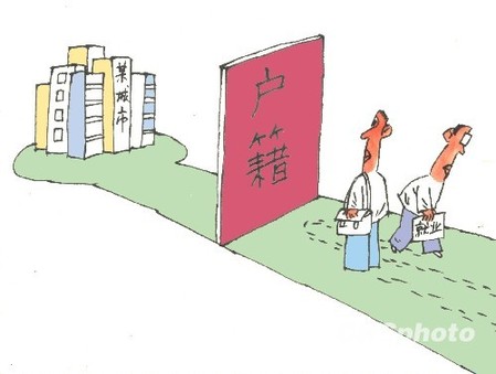 漫畫:戶籍壁壘 中新社發(fā) 羅琪 攝