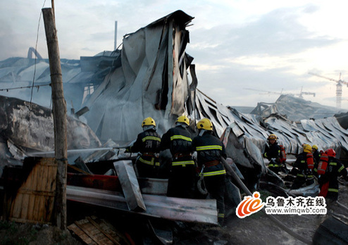 據(jù)加工廠有關負責人介紹,失火的鋼結構廠房面積約1800平方米,被兩家加工廠合租使用。一家叫新疆金鼎鑫塑膠制品公司,另一家是名為鑫豐橋鋼結構公司。火災發(fā)生時正值工人下班,除值班人員外,廠內沒有其他人員。