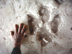 綦江蓮花保寨絕壁上發(fā)現(xiàn)大量恐龍腳印 (資料圖片) ????中美科學(xué)考察隊(duì)日前在對(duì)位于重慶市綦江縣境內(nèi)的蓮花保寨恐龍足跡群進(jìn)一步考察時(shí),發(fā)現(xiàn)了一批罕見立體恐龍足跡。專家認(rèn)為,這些立體恐龍足跡的發(fā)現(xiàn)對(duì)于研究恐龍的行走方式有重要的參考作用。目前,足跡學(xué)者正在進(jìn)一步研究中。 ????蓮花保寨恐龍足跡群是目前西南地區(qū)白堊紀(jì)最大規(guī)模的恐龍足跡群,發(fā)現(xiàn)于2003年,140 ????專家在對(duì)蓮花保寨恐龍足跡群進(jìn)一步考察時(shí),意外地發(fā)現(xiàn)其中一些保存完好的凸型恐龍足跡,足跡有三趾,后部有丘狀的跖骨印痕,每個(gè)趾前端有蹄狀爪痕,高達(dá)半米,大大超過了以往常見的幾厘米的足跡高度。經(jīng)專家研究,認(rèn)定這批恐龍足跡為立體恐龍足跡,是一種大型鴨嘴龍恐龍足跡。 ????科考隊(duì)專家邢立達(dá)解釋說:“此次發(fā)現(xiàn)立體恐龍足跡的地方,當(dāng)時(shí)可能存在一個(gè)軟泥坑,當(dāng)鴨嘴龍行走至此時(shí),踩入坑中,后來,足跡大坑被沉積物充填,形成了一個(gè)鑄模。當(dāng)后人開采時(shí),恰好暴露到足跡的邊緣,才得以一見這個(gè)非常有趣的足跡?!彼f:“我們甚至可以看到鴨嘴龍腳趾在瞬間的變化,從諸趾張開到緊張收攏的經(jīng)過。” ????據(jù)專家介紹,恐龍足跡具有骨骼化石無法替代的作用,化石保存的僅是恐龍死后那些支離破碎的信息,但足跡保存的卻是恐龍?jiān)谌粘I钪械木室凰?。恐龍足跡不僅能反映恐龍本身的生活習(xí)性、行為方式,還能解釋恐龍與其生活環(huán)境的關(guān)系。專家說,立體恐龍足跡更為罕見,對(duì)于研究鴨嘴龍的行走方式有很重要的參考作用。 |