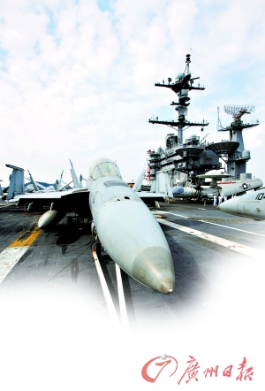 ????駐扎在日本橫須賀美軍基地的“喬治華盛頓”號核動力航空母艦,將艦載機停放在飛行甲板上展示。 圖/新華 圖片來源:廣州日報