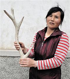 ????相先生在山洞里發(fā)現(xiàn)名貴藥材的消息不脛而走,很多村民都到那個(gè)山洞里尋寶,后來(lái)采礦隊(duì)也到那個(gè)山洞里采礦,這處山洞遭到破壞,逐漸被挖深了,頂部也被剖開(kāi),成了一道峽谷。記者昨天在現(xiàn)場(chǎng)看到,這道峽谷長(zhǎng)約百米,底部有水,谷深至少十幾米?!斑@支鹿茸原本是很完整的,我一直將它放在柜子里,可惜俺家小孩子頑皮,9年前將它拿出來(lái)玩耍,結(jié)果將頂部?jī)蓚€(gè)叉弄斷了?!毕嘞壬f(shuō),不僅如此,他保存的那個(gè)鹿頭骨也被孩子拿出去玩耍時(shí)弄丟了,為此他一直覺(jué)得太可惜。
