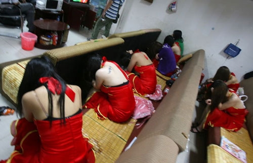 ?2010年7月9日,南寧市興寧區(qū)公安分局集中整治6家涉黃場所,查獲涉嫌賣淫嫖娼人員20人,對存在違規(guī)營業(yè)的5家桑拿場所給予警告,并責令限期整頓。圖為涉嫌賣淫嫖娼的劉某某和劉某被抓現(xiàn)行。 來源:東方IC