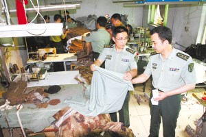 記者在井陘縣微水鎮(zhèn)犯罪嫌疑人王中林家中看到,20多臺縫紉機(jī)整齊地排列在三層小樓內(nèi),5名工人正在趕制新型07式迷彩大衣,在旁邊的倉庫中堆放著幾十箱各式各樣的成品假軍服。北京軍區(qū)軍服管理專項整治領(lǐng)導(dǎo)小組有關(guān)負(fù)責(zé)人介紹說,這個窩點從事非法生產(chǎn)軍服已有6年之久。