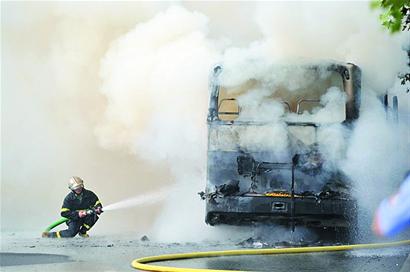 ????“我當時開車出去辦事正好跟在這輛大客車后面,眼看著大客車尾部冒起濃煙來,隱約還能看到火星,我覺得事情不對,一腳油門沖到大客車前面示警。”目擊者曹先生告訴記者,客車司機此時也發(fā)現(xiàn)了火情,把車停在路邊后下車查看,發(fā)現(xiàn)車后發(fā)動機位置的煙越來越濃,他從客車上搬下一些礦泉水等物品后,找到車載滅火器開始滅火,曹先生也從自己車上找來滅火器上前幫忙,此時周圍一些公司的保安也發(fā)現(xiàn)火情,拎著滅火器沖過來,但可惜的是火勢實在太大,很快就蔓延到整個車身,他們怕大客車爆炸,無奈躲到10多米外的安全位置。兩輛消防車聞訊趕到現(xiàn)場,消防隊員架起高壓水槍對著客車一陣猛噴,30多分鐘后才將火撲滅,但大客車已經被燒成黑色的鐵架子。