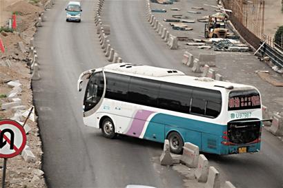 ????昨天上午7時30分,記者經(jīng)膠州灣高速原海泊河收費站進入環(huán)灣大道,因環(huán)灣大道西半幅道路正在拓寬改造,東半幅道路僅有兩個單向車道通行,貨車、大巴、轎車等擠在一個車道上行駛,速度很慢,但因高峰時段還未到來,環(huán)灣大道交通未現(xiàn)擁堵。