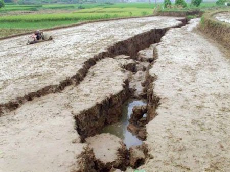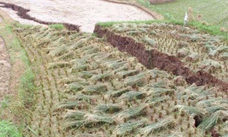 ????7月25日凌晨,湖南省雙峰縣杏子鋪鎮(zhèn)虎塘村發(fā)生大面積沉陷,全村近兩平方公里范圍內(nèi),不少房屋、公路、水塘、稻田出現(xiàn)沉陷或開裂,房屋裂縫最寬達(dá)20余公分,稻田最大裂縫寬度則超過了一米,倒塌房屋兩間。所幸沒有造成人員傷亡。