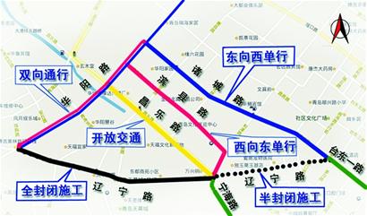 ????遼寧路(華陽(yáng)路到威海路段)分為兩段同步施工,工期是從8月1日到9月30日。遼寧路(寧海路口至臺(tái)東一路口段)半封閉施工,禁止機(jī)動(dòng)車通行(公交車除外)。遼寧路(華陽(yáng)路口至寧海路段)封閉施工,禁止機(jī)動(dòng)車通行。