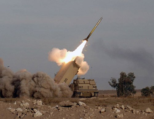 美制MLRS M270自行火箭炮發(fā)射火箭彈