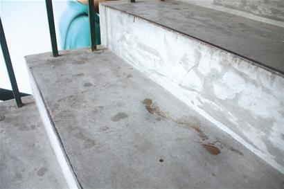 ????隨后,記者來到了人民一路53號附近的居民區(qū),在該小區(qū)5號樓門口,許多市民正圍在樓口,表情有些緊張。“血案就是在我們樓上發(fā)生的,你看看,樓梯上滿是血跡?!笔忻裢醮髬尯ε碌卣f。她告訴記者,發(fā)生慘劇的301室最近兩天夫妻倆一直在吵鬧,昨天上午特別厲害。出事的301室已經(jīng)被民警封鎖,樓梯上血跡斑斑。繞到案發(fā)樓座背后,記者看到301室的防盜窗上滿是血跡,在墻壁上,記者還看到一條讓人驚悚的血痕,從三樓一直延伸到二樓。