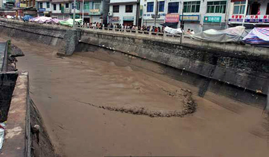 ????7日晚10時許,甘肅省甘南藏族自治州舟曲縣城區(qū)強降雨,在8日凌晨1時許形成堰塞湖,縣城一半已經(jīng)被淹,一個村莊整體被沒過,城區(qū)停電,一些房屋倒塌,部分街道上已經(jīng)出現(xiàn)了1米多厚的淤泥。