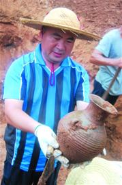 昨天,考古人員繼續(xù)對(duì)兩座漢墓實(shí)施發(fā)掘,根據(jù)發(fā)掘出的一些貝殼,確定為這兩座古墓為西漢時(shí)期的積貝墓。更讓考古人員感到興奮的是,其中一座積貝墓出土了兩個(gè)破碎的黑陶罐,在另外一個(gè)積貝墓中還出土了兩個(gè)珍貴的西漢時(shí)期盛酒用的原始瓷壺??脊湃藛T告訴記者,原始瓷壺在青島地區(qū)還是很少發(fā)現(xiàn),它是現(xiàn)代瓷器的鼻祖,具有重要考古價(jià)值。而這些文物的出土以及積貝墓的再次發(fā)現(xiàn),也證明兩處墓主人的身份非常高 發(fā)掘 兩處漢墓同為積貝墓 昨天下午,記者來(lái)到考古現(xiàn)場(chǎng)看到,考古人員正在對(duì)兩處并列呈南北向墓葬進(jìn)行緊張施工。隨著兩處墓葬頂部厚約1米多的土層被相繼挖出,考古人員率先從南部的那處墓葬中,發(fā)現(xiàn)了少量貝殼。“這是積貝墓,小心挖掘!防止破壞文物!”積貝墓的出現(xiàn)引起了考古人員的高度重視,考古人員要求工作人員小心翼翼地發(fā)掘?!斑@處墓葬也出現(xiàn)了貝殼!”在對(duì)南側(cè)那處漢墓繼續(xù)發(fā)掘過(guò)程中,在緊挨著北側(cè)的另一處漢墓也傳來(lái)喜訊,經(jīng)考古人員現(xiàn)場(chǎng)查看,這處墓葬也是西漢時(shí)期積貝墓。記者看到,這些混合在土層中的積貝殼,個(gè)頭很小,盡管深埋在地下經(jīng)歷了2000多年時(shí)間,但這些小貝殼仍然大部分保存完整。記者拿起一把貝殼看到,這些貝殼中多為蛤蜊和海蠣子殼。 |