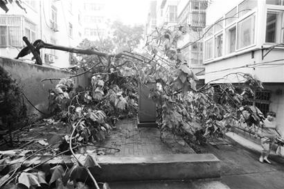 ????早報訊 回家的路上突然下起了大雨,很多人都會覺得很倒霉,而家住武定路21號的夏先生則是連呼幸運。“當時是11點20左右,我快到家門口的時候突然下起一陣急雨,為了躲雨,我快跑了兩步。”夏先生說,他剛跑進樓道內(nèi),就聽見身后傳來“轟隆”一聲,回頭一看,自己剛跑過的路已經(jīng)被一棵20米高的樹堵上了。