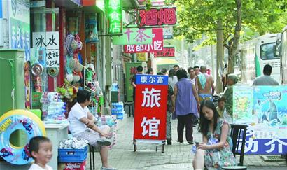 ????“我這共有15間房子,7月份時入住率在80%左右,今天15間房全租出去了?!弊蛱煜挛?時,位于上杭路上的“老兵旅館”負責人劉女士向記者介紹,每年學生放暑假后,旅館生意最好。她的旅館從來不做宣傳,靠的就是游客們的口碑?!霸谖业穆灭^中住一晚最低只要40元,我們一是保持房間干凈整潔,再就是熱情服務,讓游客有賓至如歸的感覺。”劉女士介紹說。