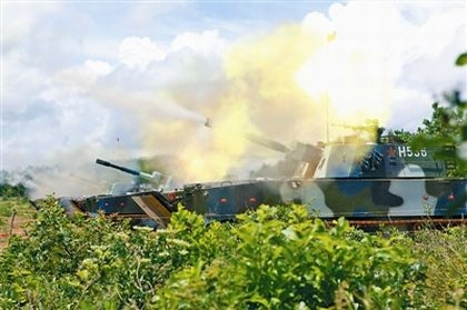 ????“準(zhǔn)備射擊!”3輛戰(zhàn)車距離岸灘數(shù)百米時(shí),目標(biāo)位置、氣溫、風(fēng)速、氣壓等射擊條件傳入新型兩棲自行火炮的火控計(jì)算機(jī),射擊諸元迅速顯示,炮口自動(dòng)轉(zhuǎn)動(dòng)俯仰。就在戰(zhàn)車履帶剛剛搶灘上陸的瞬間,6發(fā)炮彈同時(shí)離膛。幾秒鐘后,前方觀察所指示:“目標(biāo)摧毀,迅速轉(zhuǎn)移!”隨即,3輛戰(zhàn)車快速向海岸叢林轉(zhuǎn)移隱匿。