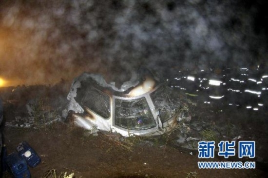 這是8月25日凌晨拍攝的失事飛機殘骸。 新華社發(fā)(李廣福 攝)