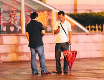 ????昨晚7時,記者來到火車站廣場,以學(xué)生的身份來到“黃?!陛^為活躍的東售票廳,由于大廳內(nèi)有鐵路警察執(zhí)勤,記者逗留10分鐘內(nèi)并沒有黃牛上前搭訕。記者故意表現(xiàn)出因為沒買到車票而顯得很煩躁。當記者剛剛走出售票廳時,一名男子鬼鬼祟祟地湊到記者身邊,“兄弟,來火車站做什么? ”“你說我來火車站做什么? ”記者反駁了一句后,故意離開了現(xiàn)場。記者注意到,那名男子徑直走向廣場上的另一名中年男子,兩人嘀咕幾句后,中年男子笑著朝記者走來。 “兄弟,到哪里去???票不好買吧?我們可以幫你,你多給點錢就是了。 ”當記者表示可以考慮的時候,中年男子讓記者走遠一點詳談,并帶著記者朝著火車站地下商場附近方向走去。當走到一半的時候,中年男子又提出去火車站出站口附近詳談,那里人多,不容易引起鐵路警察懷疑。記者和中年男子兜了一大圈后,又回到售票廳門外約10米處,有了之前的交流,記者慢慢取得了該男子的信任。 “沒辦法啊,查得嚴,只能和鐵警玩捉迷藏。 ”該男子無奈地說。