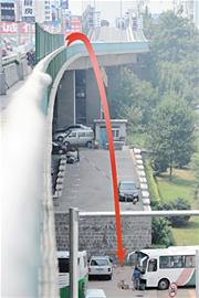 ????“這名中年男子是凌晨三四點(diǎn)鐘從橋上摔下來(lái)的,當(dāng)時(shí)停車場(chǎng)里有人看車,也聽(tīng)到有重物落下的聲音,但因?yàn)閺臉蛏纤は碌哪凶诱玫袈湓诖蟀蛙嚭退奈迕赘叩膲Ρ诳p隙中,值夜班的看車人根本就看不到?!笨窜嚾死顜煾蹈嬖V記者,值夜班的看車人上午8時(shí)已經(jīng)下班回家休息,他來(lái)上班時(shí)聽(tīng)周圍居民稱,早晨6時(shí)40分左右,大巴車司機(jī)趕到停車場(chǎng)提車,把車開(kāi)出車位時(shí)從后視鏡里看到,一名滿臉鮮血的男子臉朝下趴在地上,頭上淌了一大攤鮮血,司機(jī)急忙停車撥打110報(bào)警,并聯(lián)系120急救人員趕來(lái)?!翱礃幼铀軅吭谶@已經(jīng)很長(zhǎng)時(shí)間了,頭上流出來(lái)的血都已經(jīng)凝固了,120急救人員趕到現(xiàn)場(chǎng)為他做心電圖時(shí),上面顯示已經(jīng)是一條直線。”目睹此事的另外一輛客車司機(jī)告訴記者。