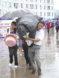 ????記者了解到,為了不讓孩子上學(xué)受苦,不少家長(zhǎng)還帶來(lái)大批學(xué)校明文禁止的違禁品。記者在男生宿舍樓看到,一個(gè)新生的媽媽過(guò)來(lái)找宿舍管理部門(mén),說(shuō)她給兒子買(mǎi)了一個(gè)小洗衣機(jī),希望學(xué)校能同意使用。宿舍管理員和學(xué)生志愿者再三勸戒,這位家長(zhǎng)才作罷。在另外一個(gè)學(xué)生宿舍,一位管理員告訴記者,他們還碰到多位家長(zhǎng)想把微波爐、壁掛式空調(diào)帶進(jìn)宿舍,也被婉言謝絕。
