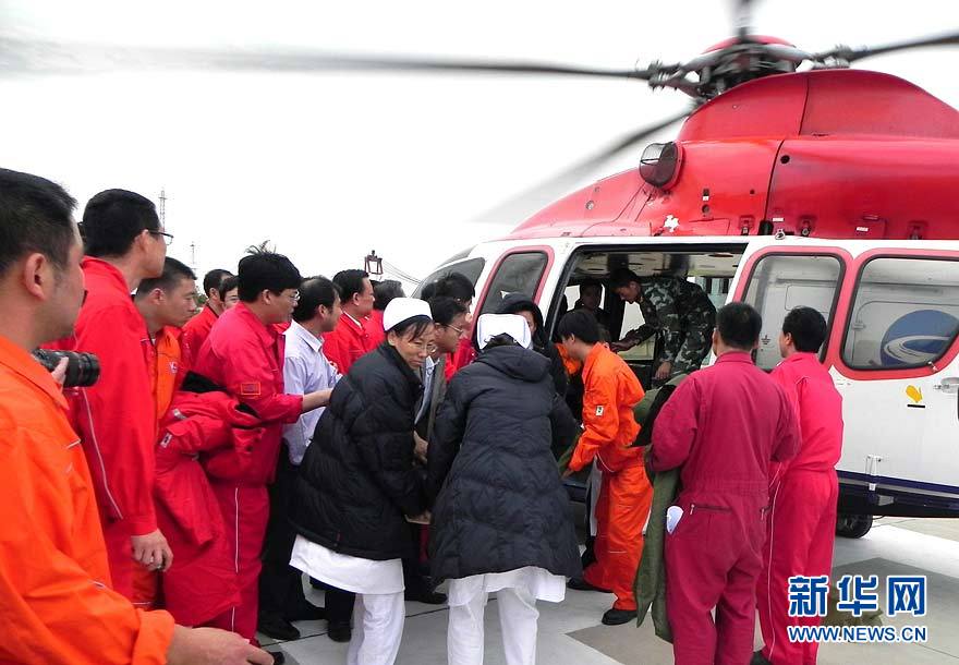 9月8日,醫(yī)護(hù)人員在轉(zhuǎn)運(yùn)被困人員。 9月7日23時(shí),山東東營(yíng)勝利油田位于渤海的作業(yè)3號(hào)鉆井平臺(tái),因傾斜遇險(xiǎn),平臺(tái)上4人落水,32人被困平臺(tái)。中國(guó)海上搜救中心連夜救助,目前已有34人獲救,救援人員正在全力搜救2名失蹤人員。新華社記者 朱崢 攝