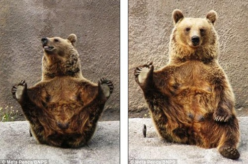 芬蘭動物園名為Santra的棕熊做瑜伽,動作標準