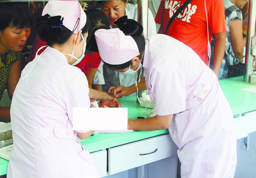????除了病房一線護士,急診上一線護士們更忙,記者選擇了相對能插上話的青醫(yī)附院小兒注射室。