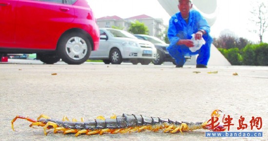 ????“真是嚇?biāo)懒?,我長這么大也沒見過那么長的蜈蚣!”劉小姐告訴記者,16日晚上10時(shí),她們從奧帆中心附近一家酒店吃完飯后,沿著路邊回家。當(dāng)走到新會路附近時(shí),張小姐突然一聲尖叫,癱坐在地,指著左腳說“疼”。在她的腳邊,有一條20多厘米長的大蜈蚣。