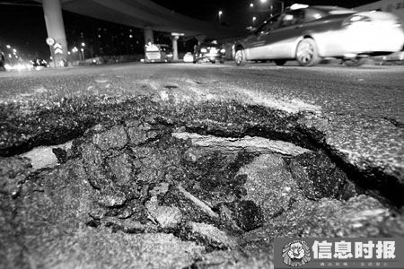 ????今年入夏幾場(chǎng)暴雨過后,長(zhǎng)沙市銀盆南路一些居民發(fā)現(xiàn):銀盆南路和瀟湘路交叉處的人行道上突然出現(xiàn)了一個(gè)直徑40厘米左右的小坑。后來,路面塌陷面積越來越大,很快成了一個(gè)直徑3米、深2米的大坑,開始危及到機(jī)動(dòng)車道,大坑周邊的路面也逐漸出現(xiàn)裂痕。雖然市政部門在周圍建起了圍擋,但路上出現(xiàn)塌陷,讓周邊居民甚感不安。
