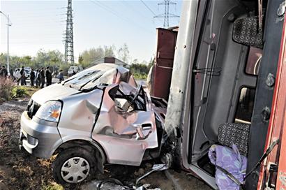 ????早報訊 昨天早晨,膠南市臨港經(jīng)濟區(qū)青島北路與前港路交界處發(fā)生一起慘劇。一輛面包車與一輛大貨車駛至十字路口時互相避讓,大貨車失去控制發(fā)生側(cè)翻,車頭和車斗前側(cè)砸在面包車上。面包車車頭被砸扁司機死亡。目前交警部門正在對此事件做進一步調(diào)查處理。