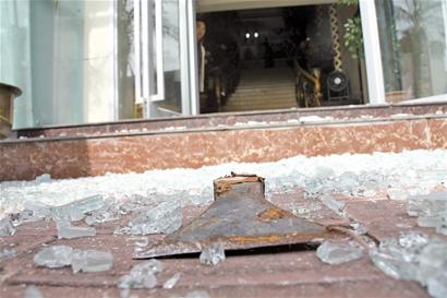 ????記者趕到位于長(zhǎng)春路和華陽(yáng)路交界處的事發(fā)現(xiàn)場(chǎng)時(shí),只見(jiàn)一家名為“長(zhǎng)春?!钡木频觊T(mén)口圍滿了人,一名滿頭是血的老漢被抬上急救車(chē)送到醫(yī)院急救。酒店門(mén)前滿是鋼化玻璃的鈍角碎片,在酒店門(mén)口的一側(cè),還有一個(gè)銹跡斑斑的斧頭。酒店上方的玻璃平臺(tái)中間位置被砸開(kāi)了一個(gè)窟窿,再往上望去,只見(jiàn)六樓處一戶人家窗戶已經(jīng)全被拆掉,正在裝修,但是裝修工已經(jīng)不見(jiàn)蹤影。