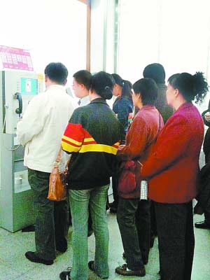 ????昨天中午1點(diǎn)多,正是午休時間,記者走進(jìn)北京銀行京源路支行,通過排號機(jī)取號后卻發(fā)現(xiàn),在記者前面等候的人數(shù)多達(dá)200人?!叭绻皇寝k理緊急業(yè)務(wù),您就改天再來吧,今天來買天然氣的人實(shí)在太多了?!币晃还ぷ魅藛T向剛走進(jìn)銀行打算取號排隊的客戶說。記者看到,在銀行大廳的最東側(cè)放著一臺自助繳費(fèi)機(jī),繳費(fèi)機(jī)前有20多人在排隊,老年人居多,他們手中都拿著天然氣卡。為了加快辦理速度,銀行特意安排了一位工作人員在繳費(fèi)機(jī)前指導(dǎo)并協(xié)助操作。不過,自助繳費(fèi)機(jī)也只能受理刷銀行卡購買天然氣的業(yè)務(wù),如果現(xiàn)金購買,還得到窗口排隊辦理。