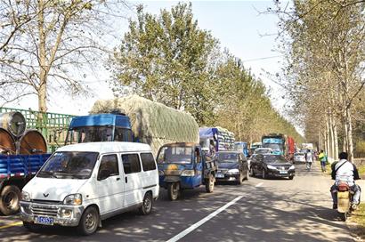 ????昨天上午8時許,在204國道王臺南段發(fā)生一起3車相撞事故,導致3輛運送直徑達10米的白色巨型鍋爐的車輛無法通過,而這3輛“大塊頭”又將其他車輛堵了個結結實實,車龍一度排出去10里路。膠南交警緊急趕到現(xiàn)場疏散交通,直到昨天下午1時許,在堵路5個小時后,現(xiàn)場秩序才恢復正常。