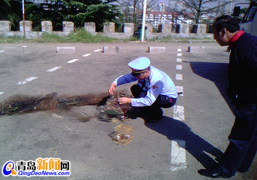 ????這張捕鳥網(wǎng)架在電視塔附近,連接起好幾棵大樹,高3米,長(zhǎng)共20米,網(wǎng)眼細(xì)密。如果鳥撞進(jìn)網(wǎng)里,根本不可能逃出,最終將被活活勒死,好在網(wǎng)上沒有被網(wǎng)住的鳥。而在樹下的一排鳥籠里,10余只品種不同的鳥兒上躥下跳,叫個(gè)不停。如果不是執(zhí)法人員及時(shí)趕到,這10余只鳥兒肯定難逃厄運(yùn)。