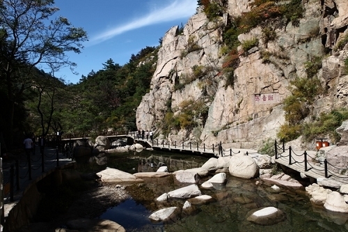 ????嶗山最高的泉—天乙泉(源泉)水從海拔千米的柱石峰腳下流出,一路接納了眾多的溪流,朝西北方向蜿蜒而去,與發(fā)源于磨屋石上方的五龍河交匯,形成嶗山水系中最大的河流—白沙河。