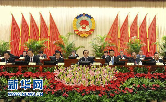 ????10月20日,政協(xié)十一屆全國委員會(huì)常務(wù)委員會(huì)第十一次會(huì)議在北京開幕。中共中央政治局常委、國務(wù)院總理溫家寶出席開幕會(huì),并作了關(guān)于中共十七屆五中全會(huì)會(huì)議情況和會(huì)議精神的報(bào)告。新華社記者謝環(huán)馳攝