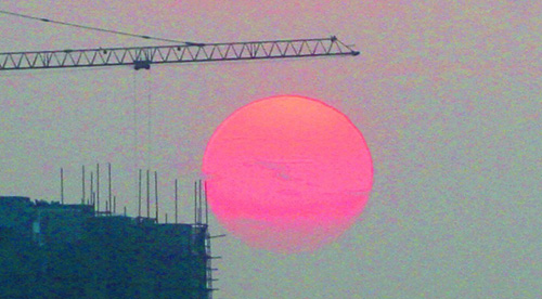 ???10月28日17時許,從徐州路望去,火紅的太陽緩緩消隱在西邊的云霧中。當日,本市風(fēng)力有所減弱,氣溫也開始逐漸回升,預(yù)計29日本市氣溫在9℃至17℃。記者 孟達