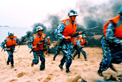 資料圖:解放軍蛟龍-2004海軍陸戰(zhàn)旅兩棲登陸作戰(zhàn)演習(xí),圖為向縱深沖擊。