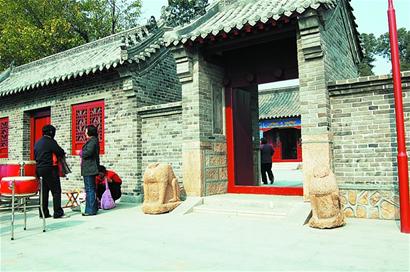 ????在童真宮門前,左右兩側(cè)各擺放著一個(gè)石猴,記者看到,其中一個(gè)石猴的頭部已經(jīng)破損,另一個(gè)保存相對(duì)完整?!耙郧翱匆姷墓沤ㄖT前要不是石獅,要不就是別的祥獸,還是第一次看見石猴?!边@對(duì)守門石猴紛紛引來(lái)參觀者的好奇?!伴T前擺放石猴與慣例有些不同,為什么擺放石猴,里面有什么說法和講究,還值得考究?!蔽奈锊块T工作人員說,這對(duì)石猴是遺址上遺留下來(lái)的,重修時(shí)發(fā)掘出來(lái),經(jīng)考證,石猴應(yīng)該是建立童真宮時(shí)設(shè)立的,距今也有1800年歷史了。 (記者 王濤 攝影報(bào)道)