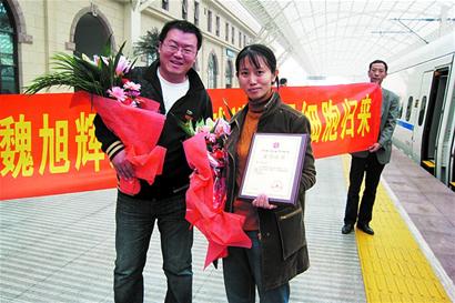 ????昨天上午10時(shí)50分,張?chǎng)?zhǔn)時(shí)回到青島,比張?chǎng)┰缁氐角鄭u的魏旭輝也來(lái)到火車站?!拔沂?0月30日開(kāi)始打動(dòng)員劑的,那個(gè)時(shí)候魏旭輝就已經(jīng)捐獻(xiàn)完了?!睆?chǎng)┱f(shuō),魏旭輝在實(shí)施捐獻(xiàn)的時(shí)候每天都發(fā)短信把身體遇到的反應(yīng)情況告訴她,所以到了她捐獻(xiàn)的時(shí)候就不緊張了?!拔揖璜I(xiàn)的時(shí)候,身體基本上沒(méi)有反應(yīng)?!蔽盒褫x說(shuō),可能是自己體格較好,并且患者是一名小姑娘,需要的造血干細(xì)胞量稍小的原因吧。