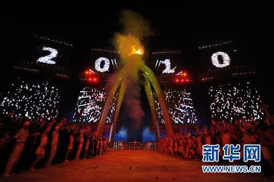 ????11月12日,第16屆亞洲運(yùn)動會開幕式在廣州海心沙島舉行。這是主火炬被點(diǎn)燃。 新華社記者陳曉偉攝