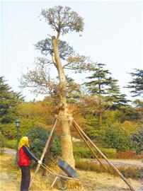 ????記者了解到,現(xiàn)在天氣轉(zhuǎn)冷,為了照顧好這兩棵“活化石”,工作人員將會給兩棵樹蓋上圍擋,同時(shí)將澆上越冬水,保證兩棵樹能成活。 (記者 王磊江 攝影報(bào)道)