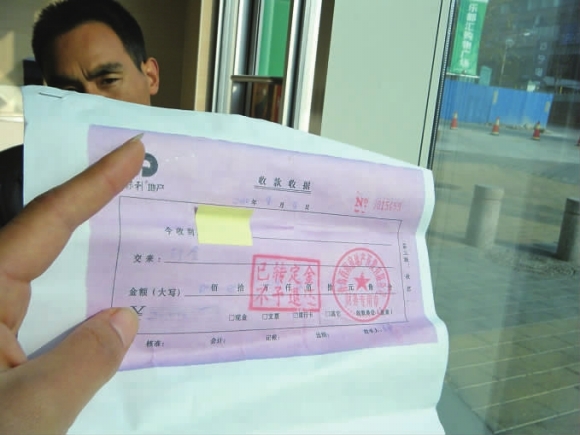 ????“當(dāng)時(shí)房子很多,我選了7號(hào)樓2單元1601戶,工作人員帶我去戶型圖前在房間號(hào)上簽了字?!倍畔壬f(shuō),之后,工作人員在其認(rèn)購(gòu)金收據(jù)上蓋了“已轉(zhuǎn)定金不予退還”的章,將其與選房卡、申購(gòu)單一并拿走,同時(shí)讓他等待簽訂認(rèn)購(gòu)協(xié)議??墒畮追昼姾?,協(xié)議簽訂處的工作人員卻告訴杜先生,因?yàn)樗麤](méi)有填寫(xiě)房型號(hào),他剛才交了定金選購(gòu)的房子已經(jīng)被其他人買走了?!澳切┍砀穸际卿N售人員幫我填寫(xiě)的,根本沒(méi)有拿給我看?!?/p>