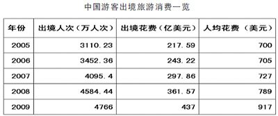 ????有資料顯示,我國出境游客人均境外消費支出已超過美、歐、日。根據環(huán)球退稅公司公布的數據,2009年,中國游客在法國購買的免稅品總額達1.58億歐元,比排在第二位的俄羅斯多0.47億歐元。中國旅游研究院預計,2010年中國出境游人數將達5400萬人次,出境旅游花費達480億美元。